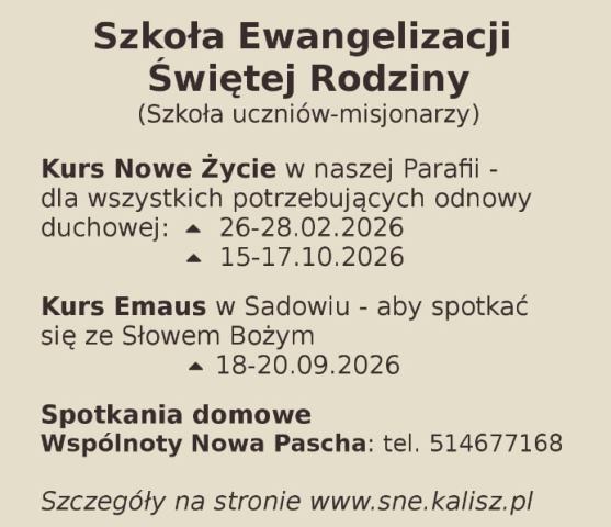 10. Stanowimy środowisko rozwoju Szkoły Nowej Ewangelizacji z którą współpracujemy.